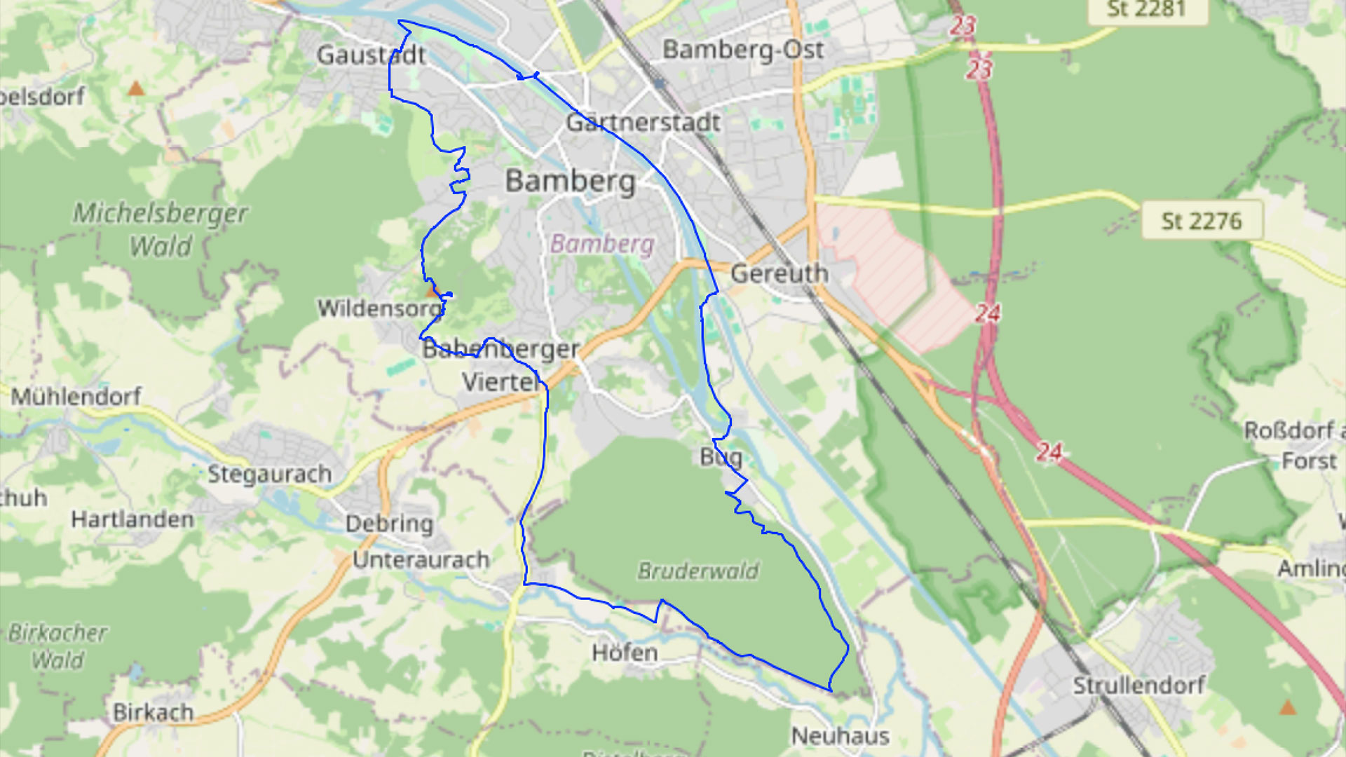 Gemeinsam wollen wir eine Strecke mit knapp 24 km laufen. Start ist am an der Schwarzen Brücke in Gaustadt, von der aus wir über die ERBA-Insel zum Main-Donau-Kanal laufen. Entlang des Adenauer-Ufer erreichen wir die Schleuse und laufen weiter nach Bug. Nach ein paar Kilometern im Bruderwald führt unsere Strecke am Waldrand entlang Richtung Waizendorf und wieder zurück nach Bamberg. Über das Babenberger Viertel laufen wir Richtung Wildensorg, zweigen davor zur Altenburg ab und haben nochmals einen anspruchsvollen Anstieg. Nach einer Runde in der Burg geht es über die Villa Remeis und den Bamberger Weg zurück zur Schwarzen Brücke in Gaustadt.