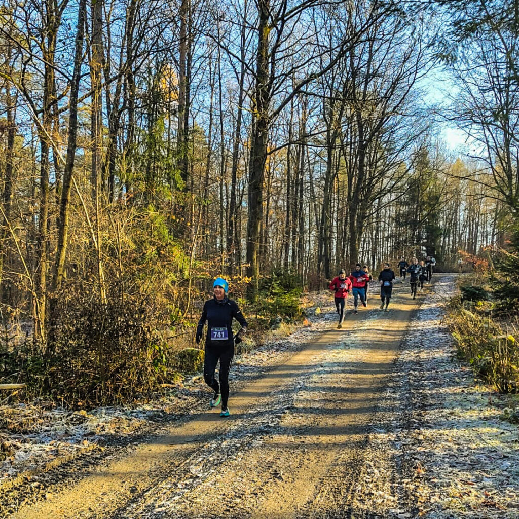 war die DJK Teutonia Gaustadt mit 9 Läufer*innen am Start. Sowohl der Wind als auch die gefrorenen Wege im Wald, die durch die Waldarbeiten schwer laufbar waren, stellten eine Herausforderung dar, die alle gut meisterten